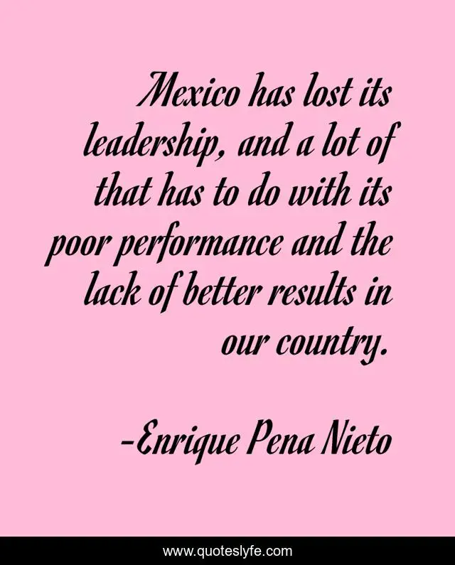 This page presents the quote "Mexico has lost its leadership, and a lot of that has to do with its poor performance and the lack of better results in our country.". Author of this quote is Enrique Pena Nieto. This quote is about better, performance, lost,.