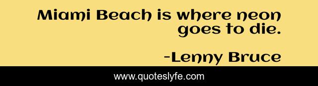 This page presents the quote "Miami Beach is where neon goes to die.". Author of this quote is Lenny Bruce. This quote is about miami, die, beach,.