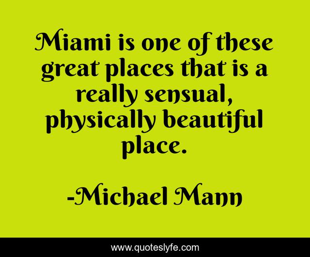 This page presents the quote "Miami is one of these great places that is a really sensual, physically beautiful place.". Author of this quote is Michael Mann. This quote is about beautiful, beautiful place,.