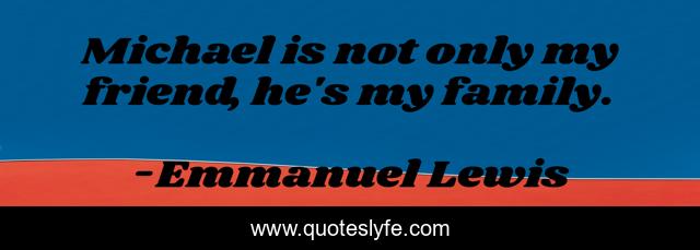This page presents the quote "Michael is not only my friend, he's my family.". Author of this quote is Emmanuel Lewis. This quote is about only, friend, my friend,.