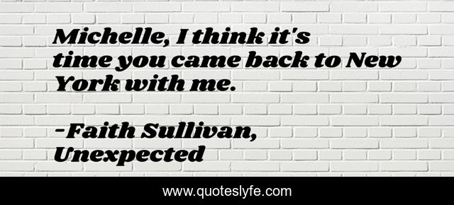 This page presents the quote "Michelle, I think it's time you came back to New York with me.". Author of this quote is Faith Sullivan, Unexpected. .
