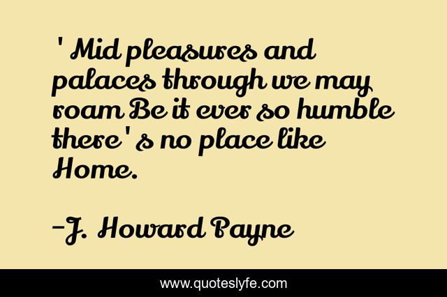 This page presents the quote "'Mid pleasures and palaces through we may roam Be it ever so humble there's no place like Home.". Author of this quote is J. Howard Payne. .