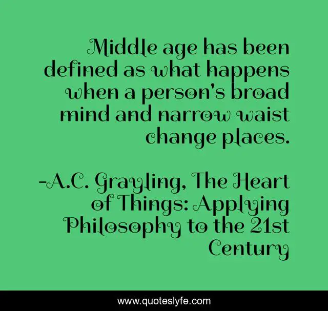 "A.C. Grayling, The Heart of Things: Applying Philosophy to the 21st Century Quotes." Quoteslyfe.com, 2025. Sat. 06 Dec. 2025. <https://www.quoteslyfe.com/quote/Middle-age-has-been-defined-as-what-3394>.