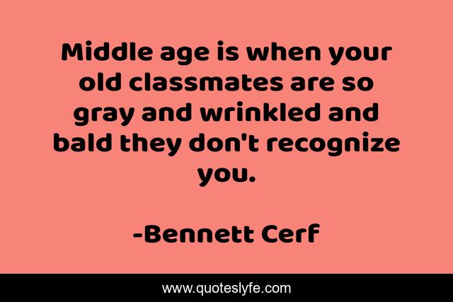 This page presents the quote "Middle age is when your old classmates are so gray and wrinkled and bald they don't recognize you.". Author of this quote is Bennett Cerf. This quote is about age, birthdays,.
