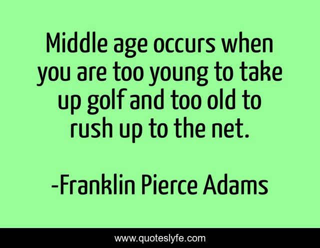This page presents the quote "Middle age occurs when you are too young to take up golf and too old to rush up to the net.". Author of this quote is Franklin Pierce Adams. This quote is about age, birthdays,.