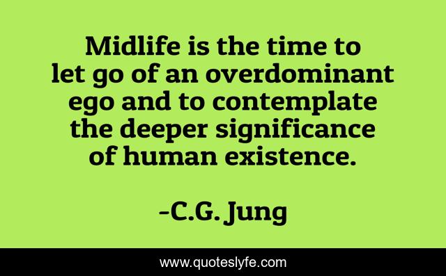 This page presents the quote "Midlife is the time to let go of an overdominant ego and to contemplate the deeper significance of human existence.". Author of this quote is C.G. Jung. This quote is about human-existence, ego, midlife,.
