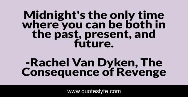 This page presents the quote "Midnight's the only time where you can be both in the past, present, and future.". Author of this quote is Rachel Van Dyken, The Consequence of Revenge. This quote is about the-consequence-of-revenge, rachel-van-dyken, midnight, time, wisdom,.
