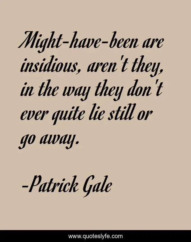 This page presents the quote "Might-have-been are insidious, aren't they, in the way they don't ever quite lie still or go away.". Author of this quote is Patrick Gale. .