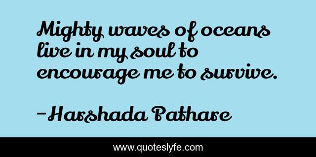 This page presents the quote "Mighty waves of oceans live in my soul to encourage me to survive.". Author of this quote is Harshada Pathare. This quote is about life-philosophy, love, inspirational, affection, enthusiasm,.