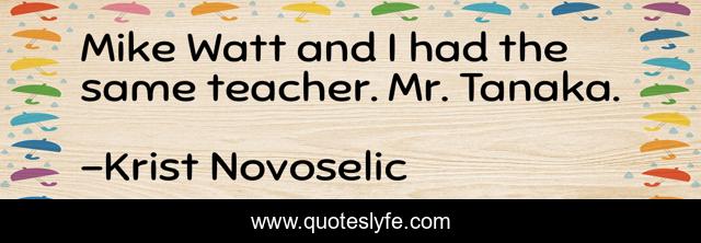 This page presents the quote "Mike Watt and I had the same teacher. Mr. Tanaka.". Author of this quote is Krist Novoselic. This quote is about mike, same, mr,.