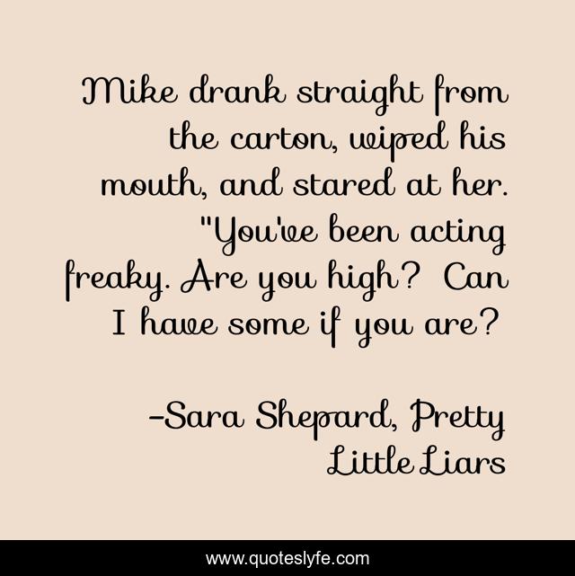 "Sara Shepard, Pretty Little Liars Quotes." Quoteslyfe.com, 2025. Tue. 09 Dec. 2025. <https://www.quoteslyfe.com/quote/Mike-drank-straight-from-the-carton-wiped-255556>.