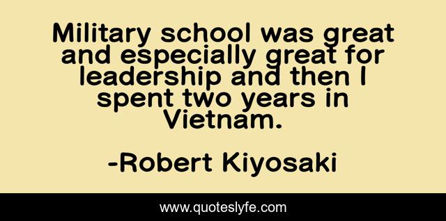This page presents the quote "Military school was great and especially great for leadership and then I spent two years in Vietnam.". Author of this quote is Robert Kiyosaki. This quote is about military, great, school,.