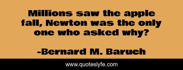 This page presents the quote "Millions saw the apple fall, Newton was the only one who asked why?". Author of this quote is Bernard M. Baruch. This quote is about science, inspirational, enthusiasm,.