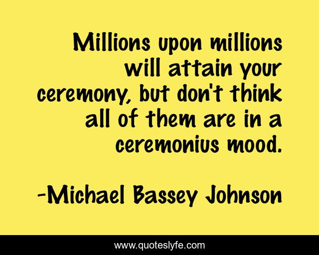 "Michael Bassey Johnson Quotes." Quoteslyfe.com, 2025. Mon. 08 Dec. 2025. <https://www.quoteslyfe.com/quote/Millions-upon-millions-will-attain-your-ceremony-233213>.