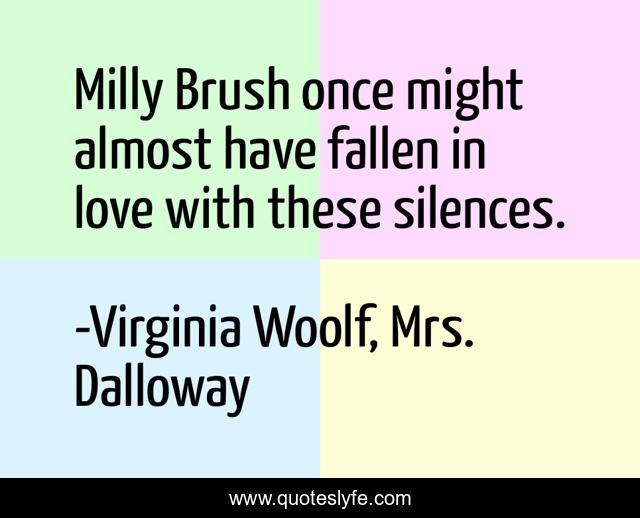 This page presents the quote "Milly Brush once might almost have fallen in love with these silences.". Author of this quote is Virginia Woolf, Mrs. Dalloway. This quote is about silence, love, woolf, affection,.