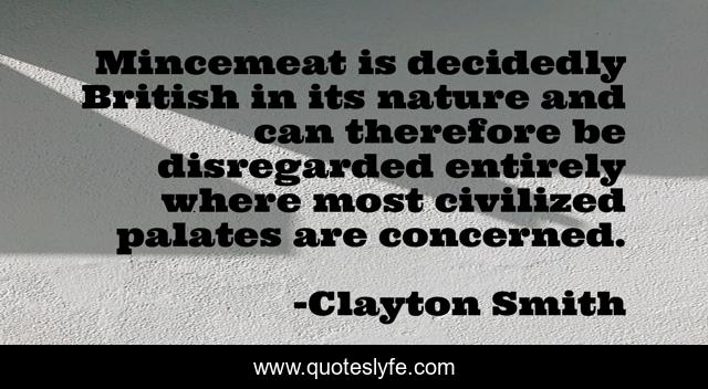 This page presents the quote "Mincemeat is decidedly British in its nature and can therefore be disregarded entirely where most civilized palates are concerned.". Author of this quote is Clayton Smith. .