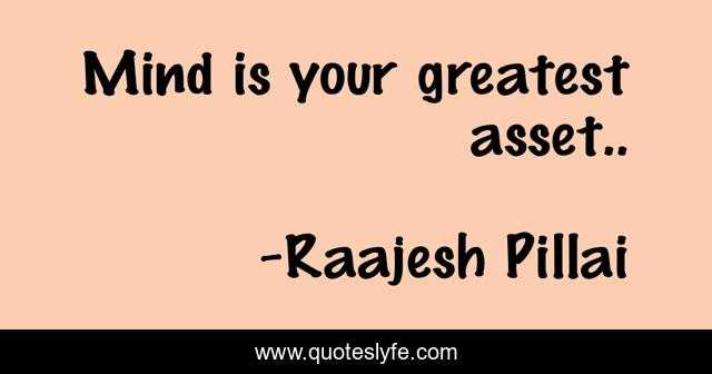 "Raajesh Pillai Quotes." Quoteslyfe.com, 2025. Mon. 08 Dec. 2025. <https://www.quoteslyfe.com/quote/Mind-is-your-greatest-asset-36790>.