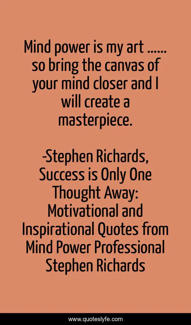 "Stephen Richards, Success is Only One Thought Away: Motivational and Inspirational Quotes from Mind Power Professional Stephen Richards Quotes." Quoteslyfe.com, 2025. Fri. 05 Dec. 2025. <https://www.quoteslyfe.com/quote/Mind-power-is-my-art-so-bring-159461>.
