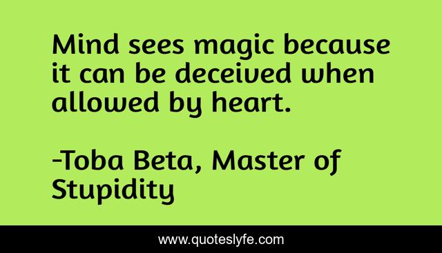 This page presents the quote "Mind sees magic because it can be deceived when allowed by heart.". Author of this quote is Toba Beta, Master of Stupidity. This quote is about heart, decision, magic,.