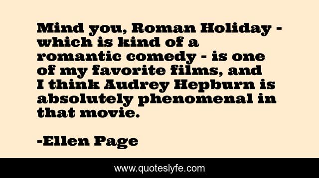 This page presents the quote "Mind you, Roman Holiday - which is kind of a romantic comedy - is one of my favorite films, and I think Audrey Hepburn is absolutely phenomenal in that movie.". Author of this quote is Ellen Page. This quote is about holiday, mind, think,.