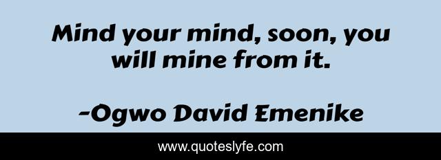 This page presents the quote "Mind your mind, soon, you will mine from it.". Author of this quote is Ogwo David Emenike. This quote is about enthusiasm, mind, inspirational,.