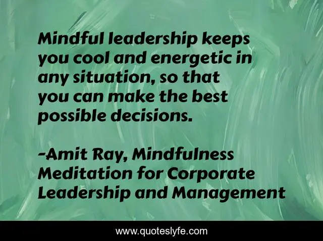 "Amit Ray, Mindfulness Meditation for Corporate Leadership and Management Quotes." Quoteslyfe.com, 2025. Tue. 09 Dec. 2025. <https://www.quoteslyfe.com/quote/Mindful-leadership-keeps-you-cool-and-energetic-185771>.