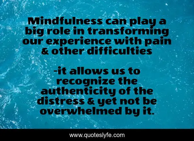"it allows us to recognize the authenticity of the distress & yet not be overwhelmed by it. Quotes." Quoteslyfe.com, 2025. Mon. 08 Dec. 2025. <https://www.quoteslyfe.com/quote/Mindfulness-can-play-a-big-role-in-10323>.