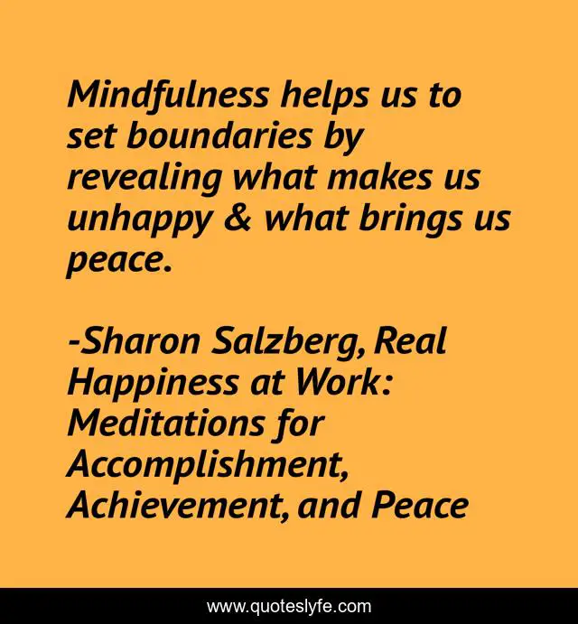 "Sharon Salzberg, Real Happiness at Work: Meditations for Accomplishment, Achievement, and Peace Quotes." Quoteslyfe.com, 2025. Sat. 06 Dec. 2025. <https://www.quoteslyfe.com/quote/Mindfulness-helps-us-to-set-boundaries-by-135360>.