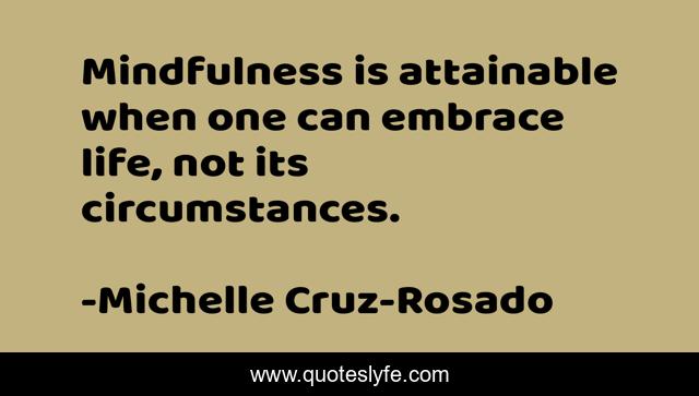 This page presents the quote "Mindfulness is attainable when one can embrace life, not its circumstances.". Author of this quote is Michelle Cruz-Rosado. This quote is about mindfulness-practice, zen, awareness,.