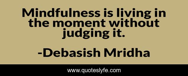 This page presents the quote "Mindfulness is living in the moment without judging it.". Author of this quote is Debasish Mridha. This quote is about mindfulness, philosophy, debasish-mridha, quotes, debasish-mridha-md, inspirational, judging, living-in-the-moment, enthusiasm,.