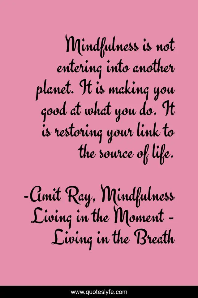 "Amit Ray, Mindfulness Living in the Moment - Living in the Breath Quotes." Quoteslyfe.com, 2025. Mon. 15 Dec. 2025. <https://www.quoteslyfe.com/quote/Mindfulness-is-not-entering-into-another-planet-185843>.