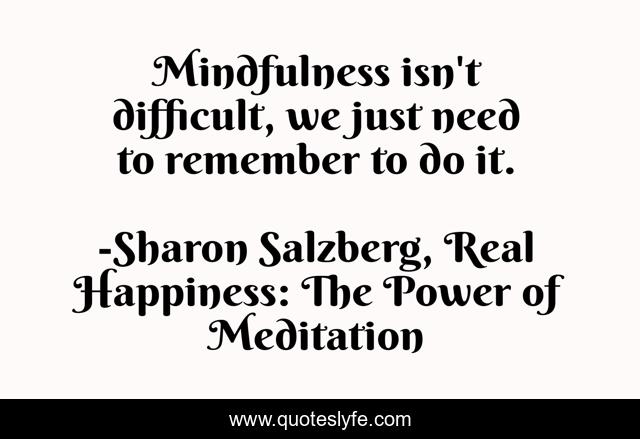 "Sharon Salzberg, Real Happiness: The Power of Meditation Quotes." Quoteslyfe.com, 2025. Sat. 06 Dec. 2025. <https://www.quoteslyfe.com/quote/Mindfulness-isn-t-difficult-we-just-need-103206>.