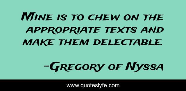 This page presents the quote "Mine is to chew on the appropriate texts and make them delectable.". Author of this quote is Gregory of Nyssa. This quote is about discipleship, mentoring, education, reading,.