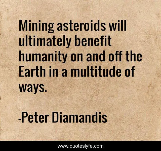 "Peter Diamandis Quotes." Quoteslyfe.com, 2025. Sun. 07 Dec. 2025. <https://www.quoteslyfe.com/quote/Mining-asteroids-will-ultimately-benefit-humanity-on-289418>.