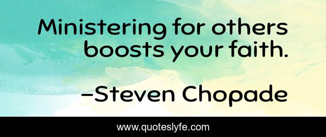 This page presents the quote "Ministering for others boosts your faith.". Author of this quote is Steven Chopade. .