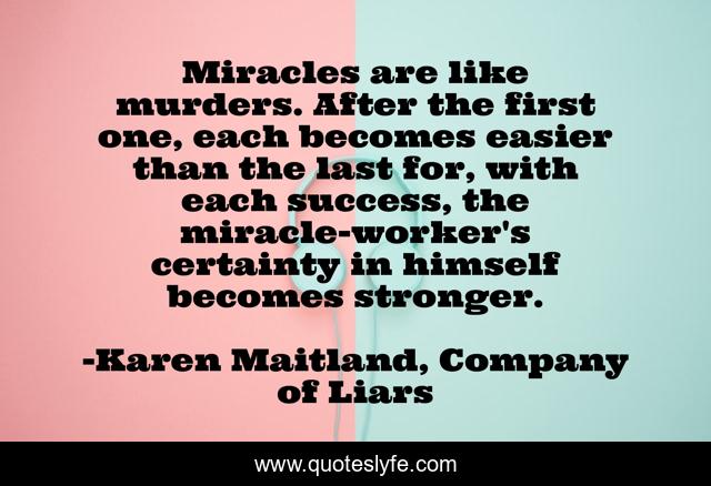 "Karen Maitland, Company of Liars Quotes." Quoteslyfe.com, 2025. Fri. 05 Dec. 2025. <https://www.quoteslyfe.com/quote/Miracles-are-like-murders-After-the-first-236476>.