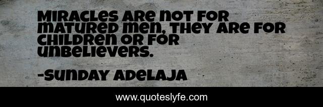 This page presents the quote "Miracles are not for matured men, they are for children or for unbelievers.". Author of this quote is Sunday Adelaja. This quote is about matured-men, miracles, children, miracle, unbelievers,.