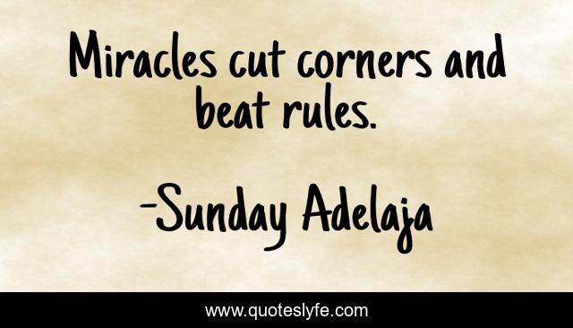 This page presents the quote "Miracles cut corners and beat rules.". Author of this quote is Sunday Adelaja. This quote is about miracles, rules, miracle,.
