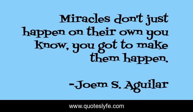 "Joem S. Aguilar Quotes." Quoteslyfe.com, 2025. Fri. 05 Dec. 2025. <https://www.quoteslyfe.com/quote/Miracles-don-t-just-happen-on-their-236488>.