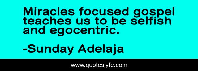 This page presents the quote "Miracles focused gospel teaches us to be selfish and egocentric.". Author of this quote is Sunday Adelaja. This quote is about selfish, egocentric, miracle-focused-gospel, teachings,.