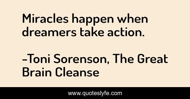 "Toni Sorenson, The Great Brain Cleanse Quotes." Quoteslyfe.com, 2025. Mon. 08 Dec. 2025. <https://www.quoteslyfe.com/quote/Miracles-happen-when-dreamers-take-action-17458>.
