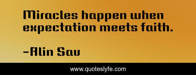 This page presents the quote "Miracles happen when expectation meets faith.". Author of this quote is Alin Sav. .