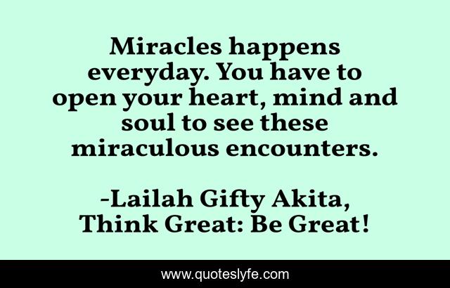 "Lailah Gifty Akita, Think Great: Be Great! Quotes." Quoteslyfe.com, 2025. Fri. 05 Dec. 2025. <https://www.quoteslyfe.com/quote/Miracles-happens-everyday-You-have-to-open-63801>.