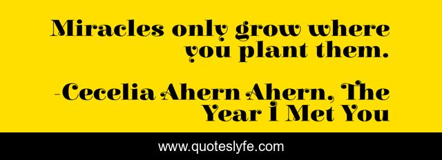 This page presents the quote "Miracles only grow where you plant them.". Author of this quote is Cecelia Ahern Ahern, The Year I Met You. This quote is about life, love, down-syndrome, family, a-year, neighbour, garden-leave, affection,.