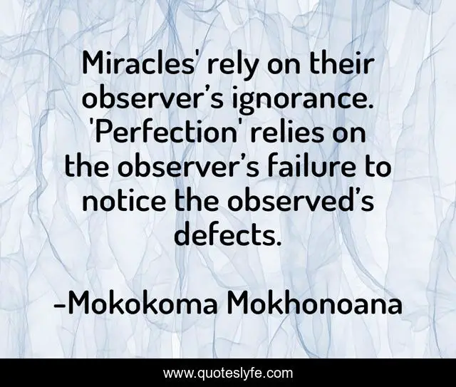 "Mokokoma Mokhonoana Quotes." Quoteslyfe.com, 2025. Fri. 05 Dec. 2025. <https://www.quoteslyfe.com/quote/Miracles-rely-on-their-observer-s-ignorance-145294>.