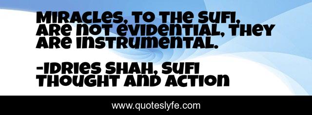 This page presents the quote "Miracles, to the Sufi, are not evidential, they are instrumental.". Author of this quote is Idries Shah, Sufi Thought and Action. This quote is about miracles, sufism, sufis,.