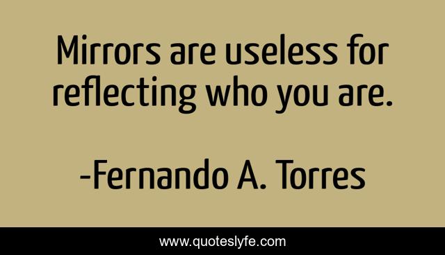 "Fernando A. Torres Quotes." Quoteslyfe.com, 2025. Fri. 05 Dec. 2025. <https://www.quoteslyfe.com/quote/Mirrors-are-useless-for-reflecting-who-you-142811>.