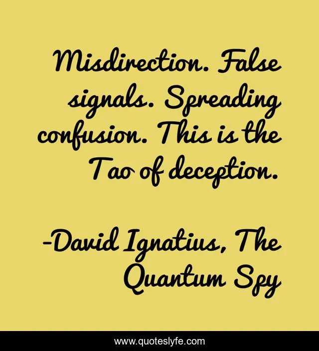 "David Ignatius, The Quantum Spy Quotes." Quoteslyfe.com, 2025. Fri. 05 Dec. 2025. <https://www.quoteslyfe.com/quote/Misdirection-False-signals-Spreading-confusion-This-is-247527>.