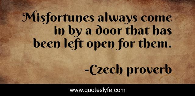 This page presents the quote "Misfortunes always come in by a door that has been left open for them.". Author of this quote is Czech proverb. .