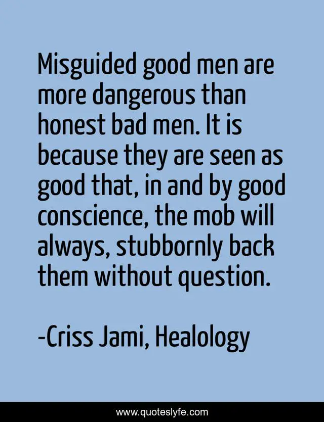 "Criss Jami, Healology Quotes." Quoteslyfe.com, 2025. Sat. 06 Dec. 2025. <https://www.quoteslyfe.com/quote/Misguided-good-men-are-more-dangerous-than-154304>.